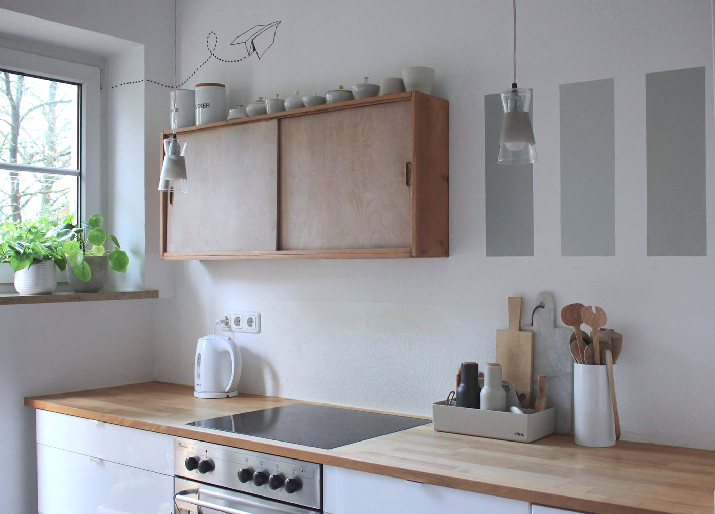 Nina hat mit einem Probeanstrich zunächst verschiedene Farben für ihre Küchenwand getestet - wie du im Titelbild sehen kannst. So hat sie den passenden Salbeiton als Akzentfarbe für die Wand hinter ihrer Küchenzeile ausgewählt. Die dezente Farbigkeit der Salbei-Töne macht sie zu zeitlosen und vielseitig kombinierbaren Farben.