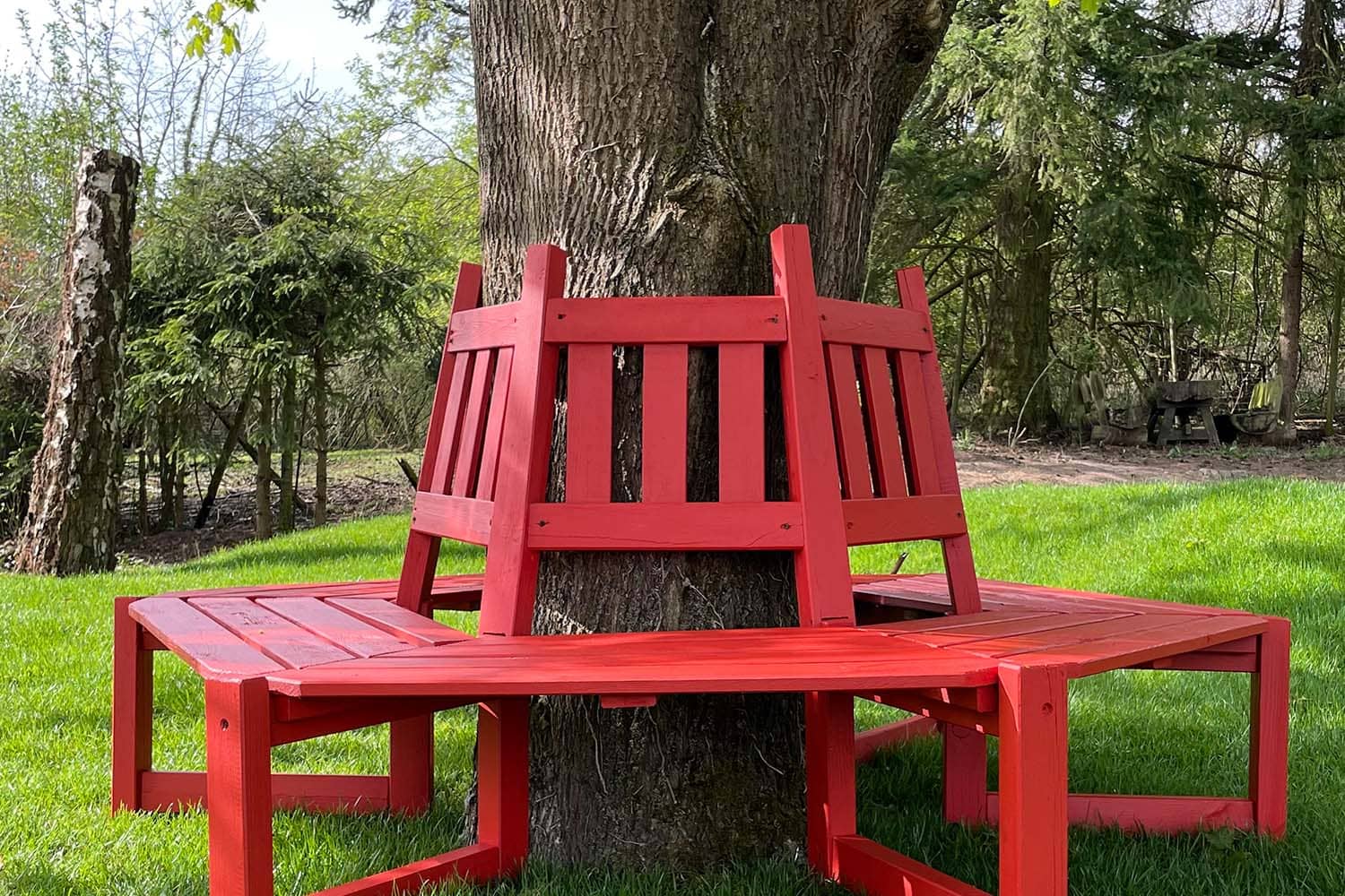 Farbfreude: Gartenbank in Tomatenrot