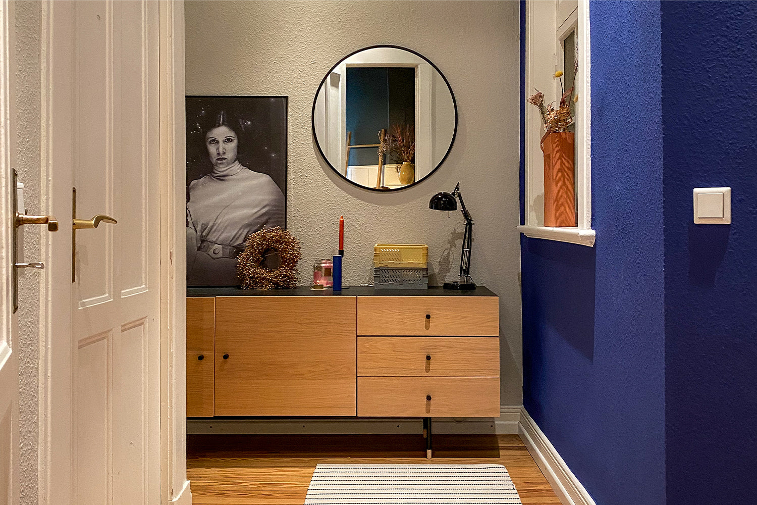 Farbfreude: Blaue Akzentwand in Annes Flur