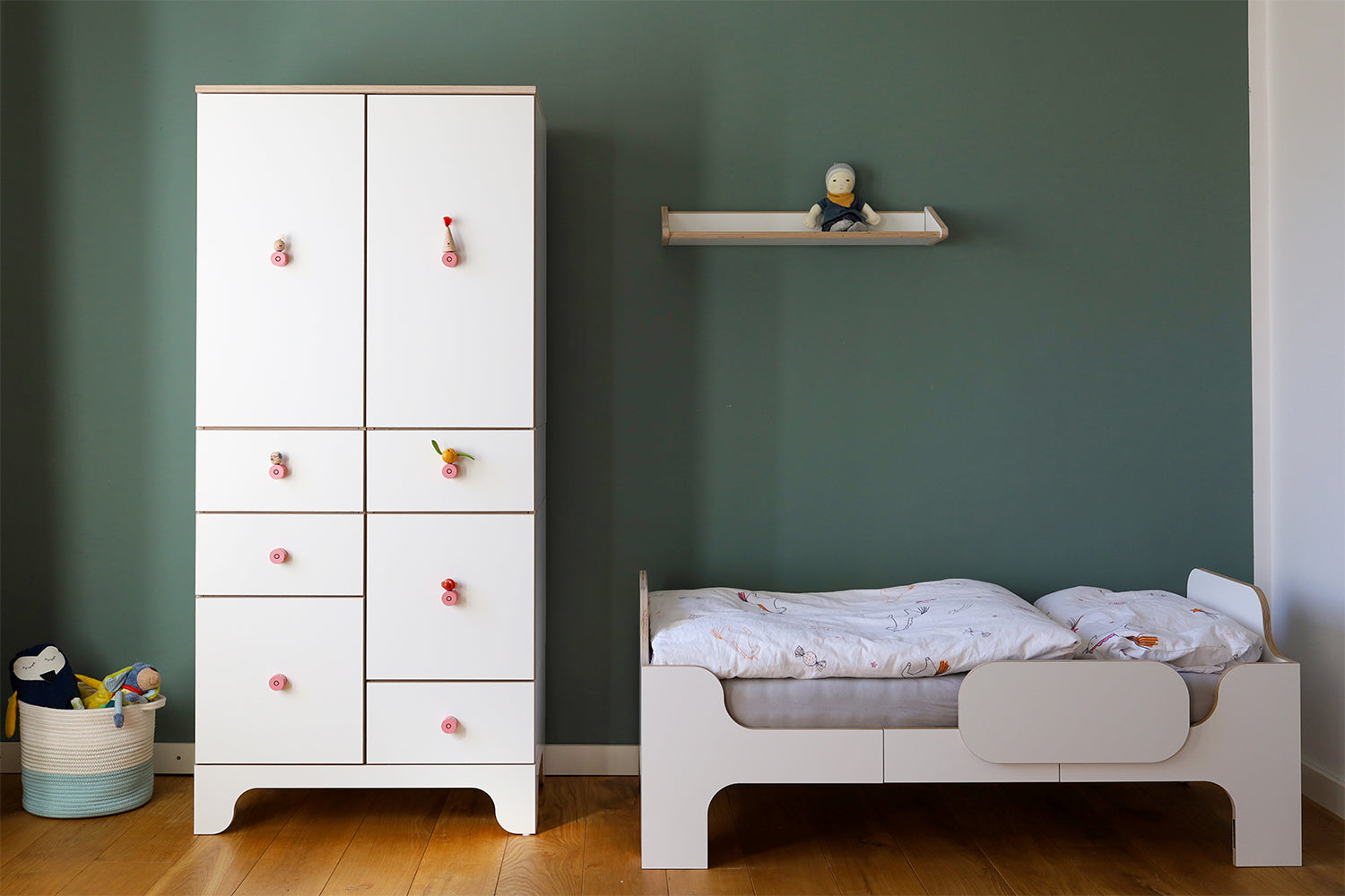 Das Kinderzimmer hat Grit mit dem "Minimalmaxi" von Wilja Möbel ausgestattet, welches sich vom Babybett, zum Kinderbett bis hin zum Juniorbett umbauen lässt. Es passt sich Schritt für Schritt den sich verändernden Bedürfnissen des Kindes an. Ist das Kind aus dem Kinderbett herausgewachsen, lässt sich das Bett ganz unkompliziert als Schreibtisch oder auch als Sofa umwandeln. Eine nachhaltige und praktische Lösung, um lange von dem Möbelstück zu profitieren.