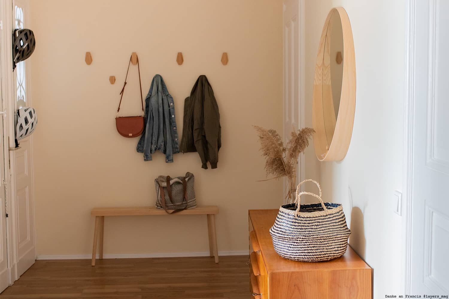 Betrittst du dein Zuhause, kommst du um einen Raum selten drumherum: Den Flur oder Eingangsbereich. Eine Freude, wenn dieser freundlich und einladend gestaltet ist, damit du bei jedem nach Hause Kommen von einem guten Gefühl empfangen wirst. Ein warmes und freundliches Pastellgelb als Wandfarbe ist dabei eine hervorragende Unterstützung. Francis hat als Wandfarbe für ihren Flur diesen zarten und warmen Farbton in einem sandigen Gelb gewählt: