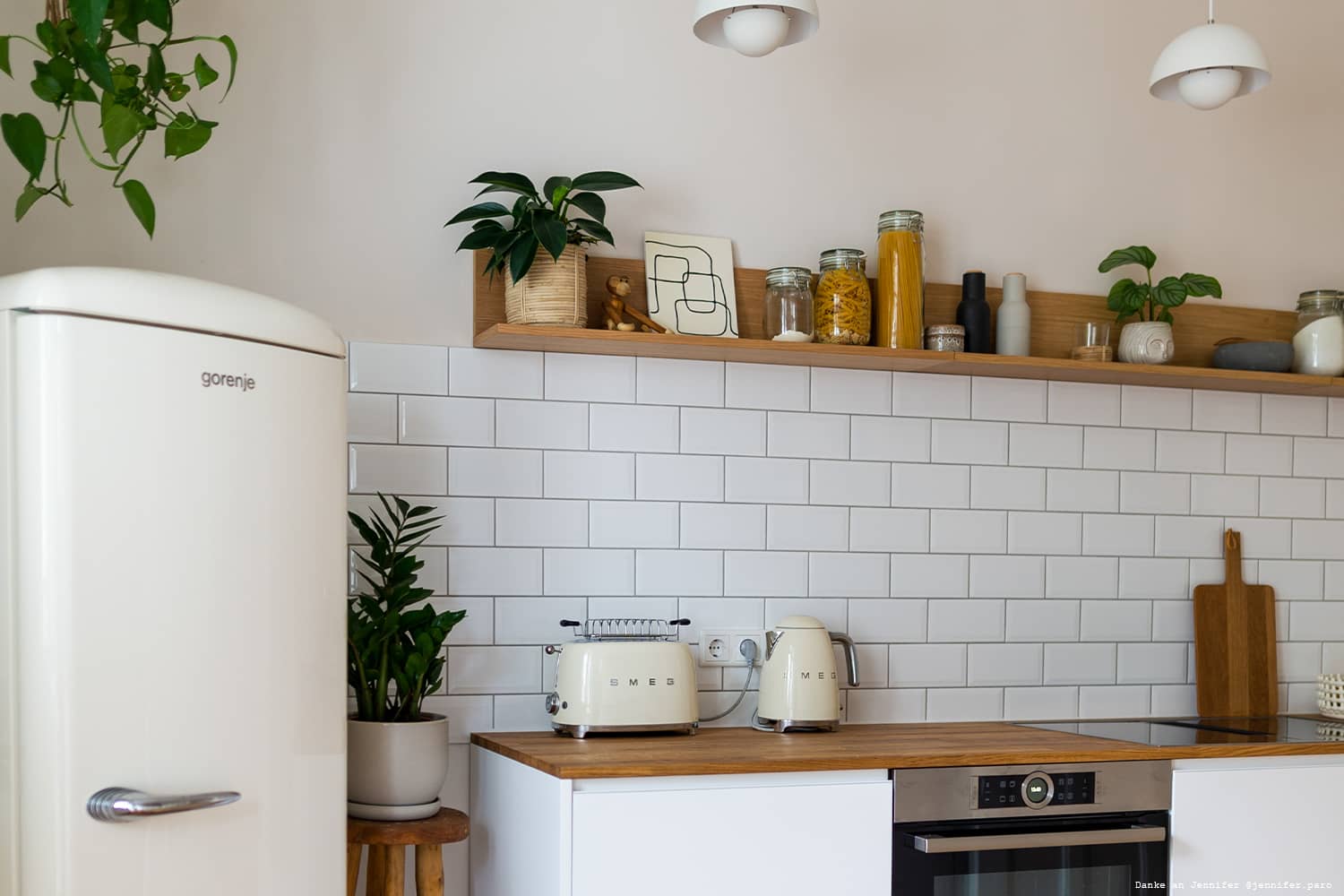 Jennifer hat ihre Küche neu eingerichtet und dabei durfte eine neue Wandfarbe passend zu ihrer Einrichtung nicht fehlen. Der sanfte, helle Farbton in Cashmere unterstreicht die ruhige Raumatmosphäre in Erdtönen. Der Farbton wirkt dezent und zurückhaltend, ist wärmer als Reinweiß und bringt einen feinen Kontrast zu den weißen Fliesen und Küchenfronten. Durch die e