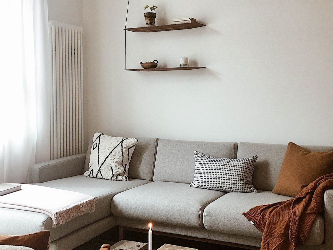 Als Wandfarbe hat Josie ein getöntes Naturweiß gewählt, welches wärmer wirkt als ein Reinweiß und den Raum in Kombination mit der Einrichtung noch gemütlicher macht.