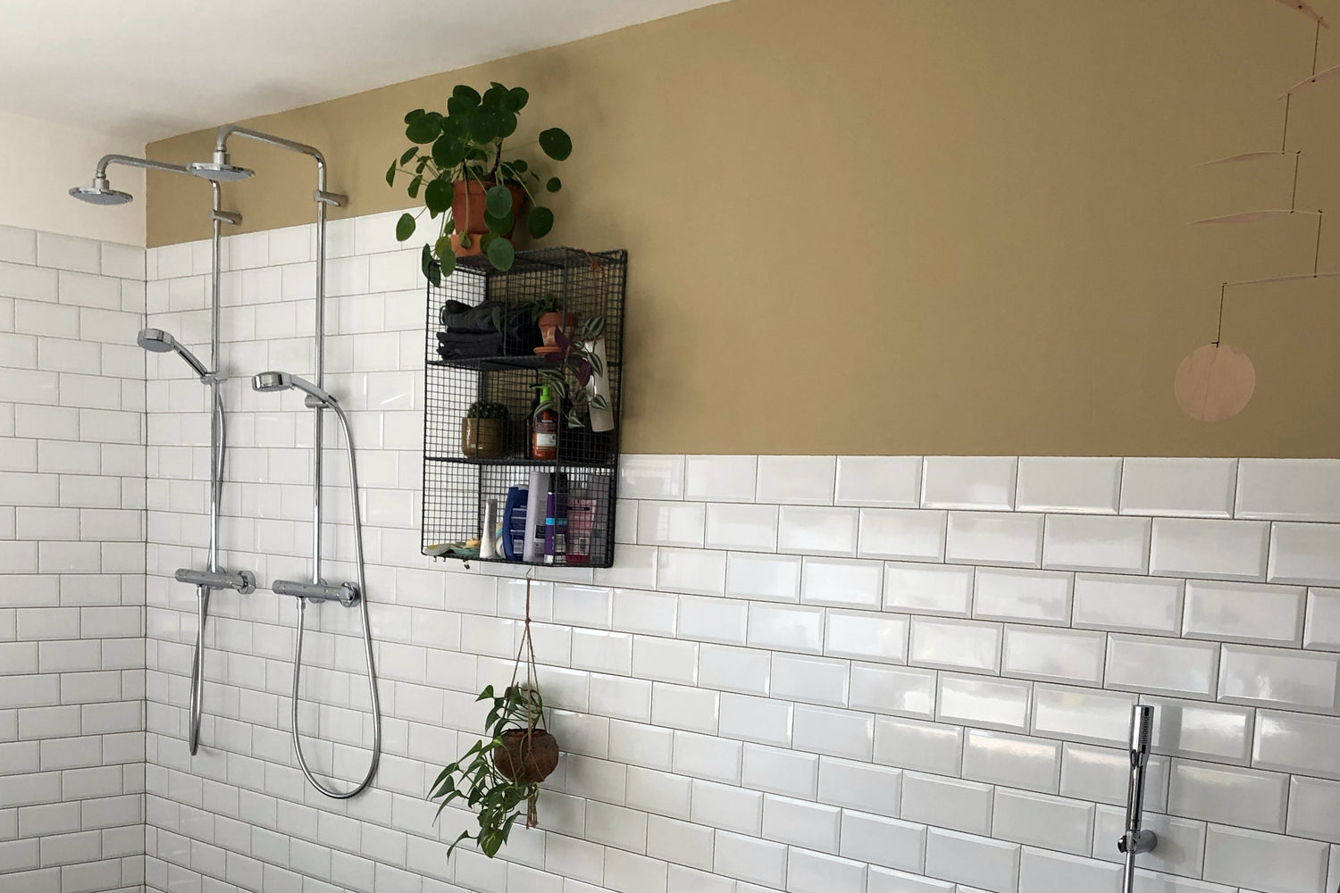 Wandfarben in warmem Currygelb strahlen viel Energie und eine gemütliche Atmosphäre aus. Die Farbe Gelb gehört zu den warmen Farben und lässt deine Räume ingesamt heller wirken. Gelbtöne in den Farbnuancen Senf- und Currygelb wirken besonders wohnlich. Verena hat einen Farbton aus der Farbpalette der Curry-Töne für eine Wand in ihrem Badezimmer gewählt. Die Wandfarbe ist ein schöner Kontrast zum überwiegenden Weiß im Raum.