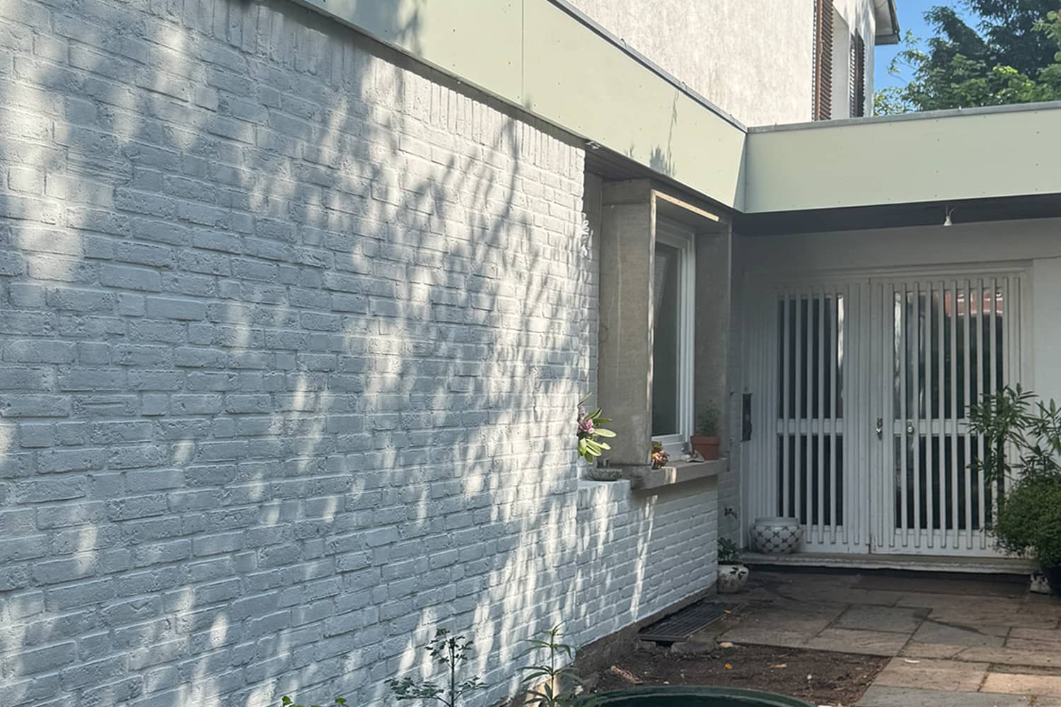 Hier wurde die dunkle Ziegelwand neu angestrichen und erstrahlt nun in einem frischen Look.