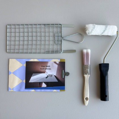 Im Set "Wandstreicher" sind eine kleine Farbrolle, ein Abrollgitter sowie ein Pinsel enthalten. Außerdem liegt ein Gutschein für eine Wandfarbe nach Wahl bei.