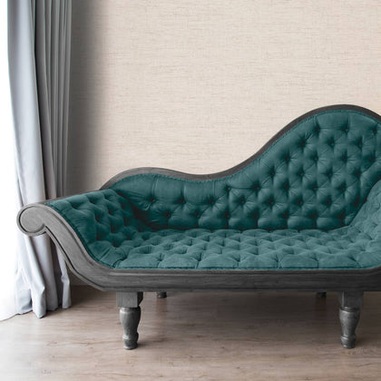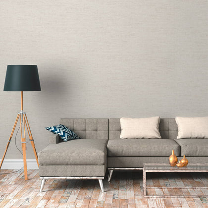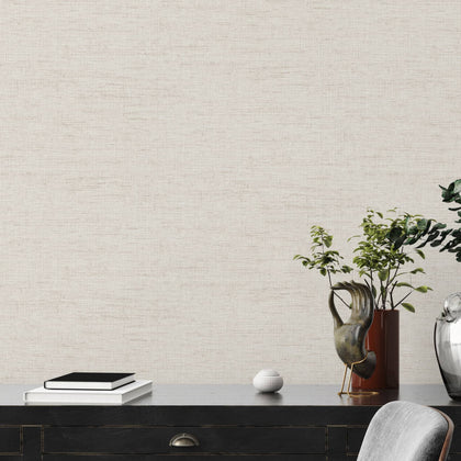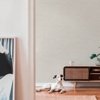 Die Tapete erinnert an helles, gewebtes Leinen mit zarter Struktur. Leicht erhabene Linien zeichnen die Oberfläche und erzeugen ein harmonisches, stoffliches Muster. Die Farbtöne reichen von Creme-Beige über Leinenbeige bis zu Wollweiß.