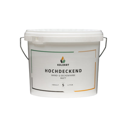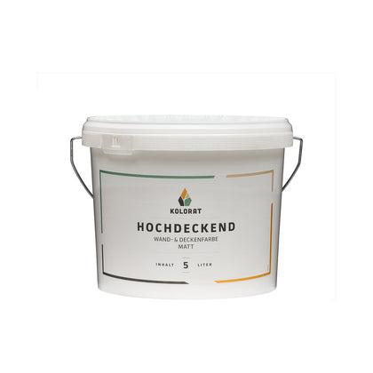 Die Wandfarbe in Hochdeckend ist umweltfreundlich und geruchsarm. Zudem ist die Farbe scheuerbeständig, diffusionsfähig und raumlufthygienisch unbedenklich (Gutachten TÜV Rheinland). Gegenüber den anderen Farbarten überzeugt sie vor allem mit ihrer Vielseitigkeit, der Deckkraft sowie höchster Ergiebigkeit. Du bekommst mit einem Liter mehr Quadratmeter gestrichen als mit den anderen Farben.